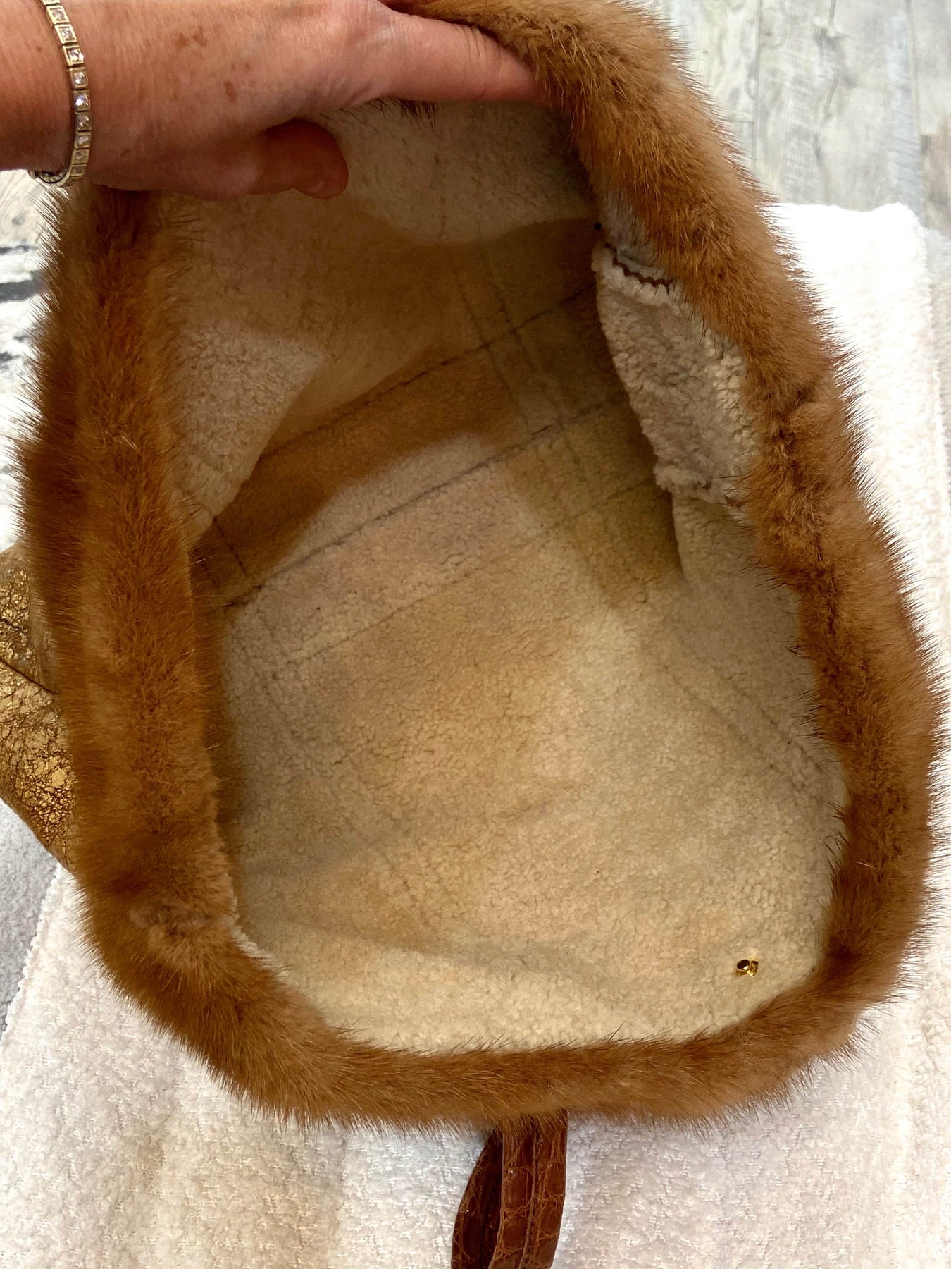 • Materials: Premium shearling body with mink fur trim. Trimmed with fine leather or suede for structure and durability.