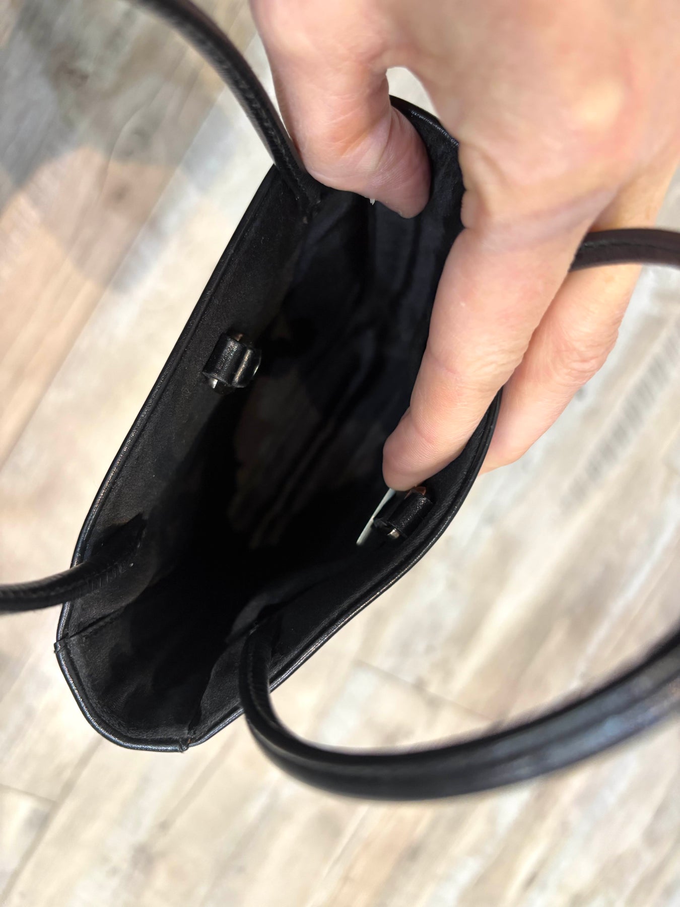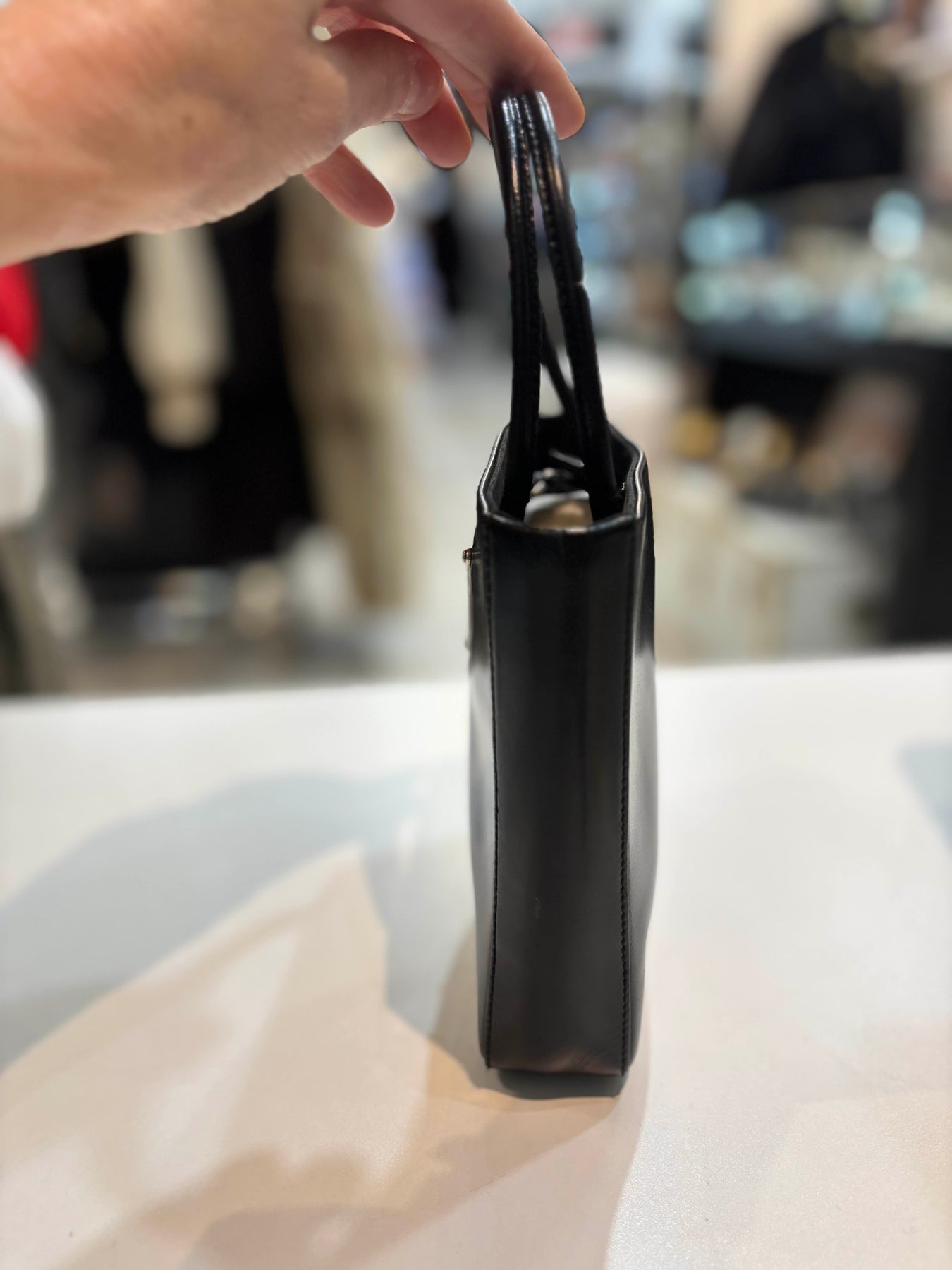 Timeless, structured, and effortlessly chic, this Prada Vintage Small Handbag captures the refined minimalism that defines the House of Prada. Crafted from sleek black leather with a smooth, polished finish, the bag features a compact boxy silhouette that feels both classic and modern—perfect for everyday sophistication or evening elegance.