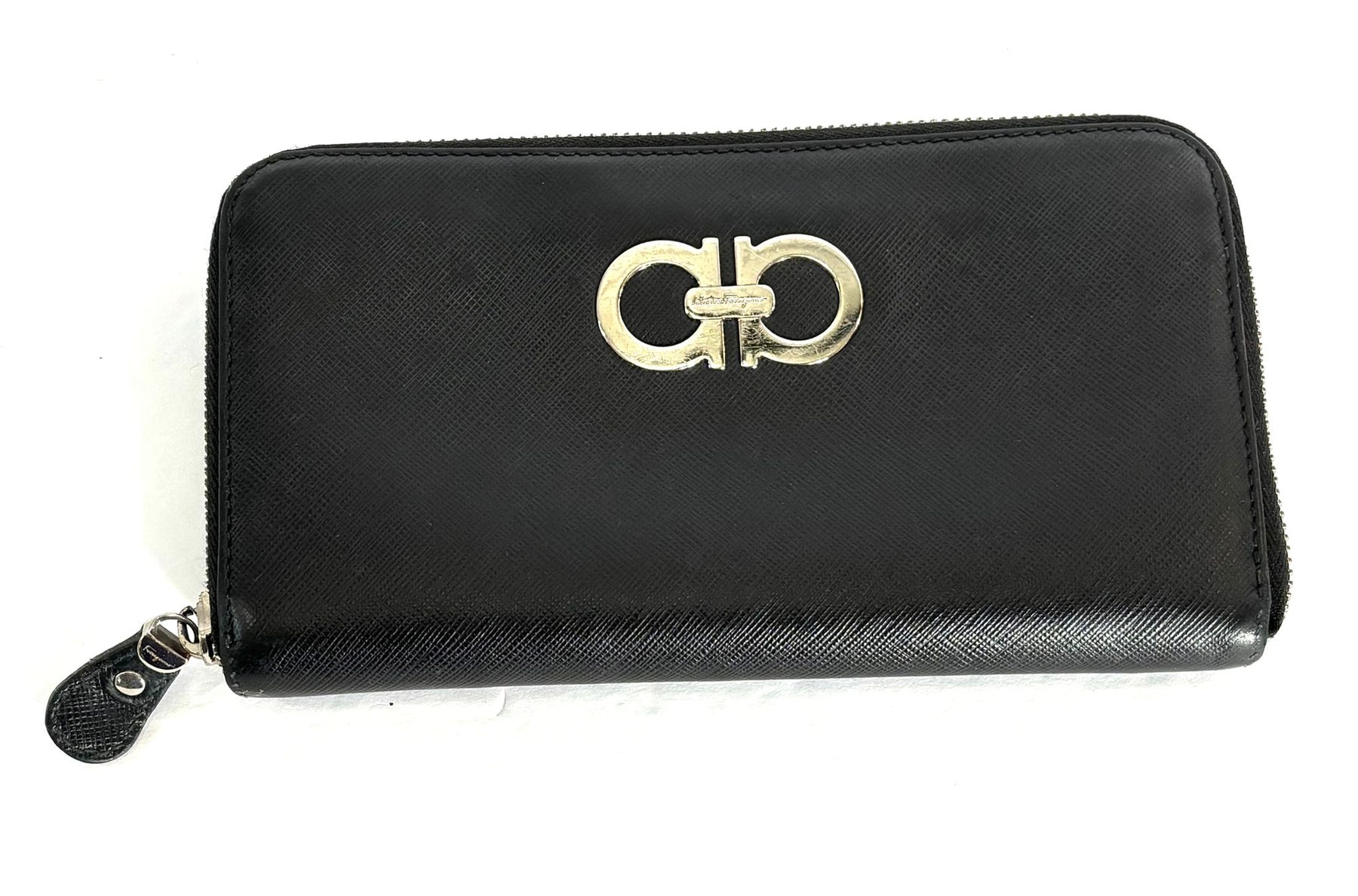 SALVATORE FERRAGAMO GANCINI ROUND ZIPPER LONG WALLET