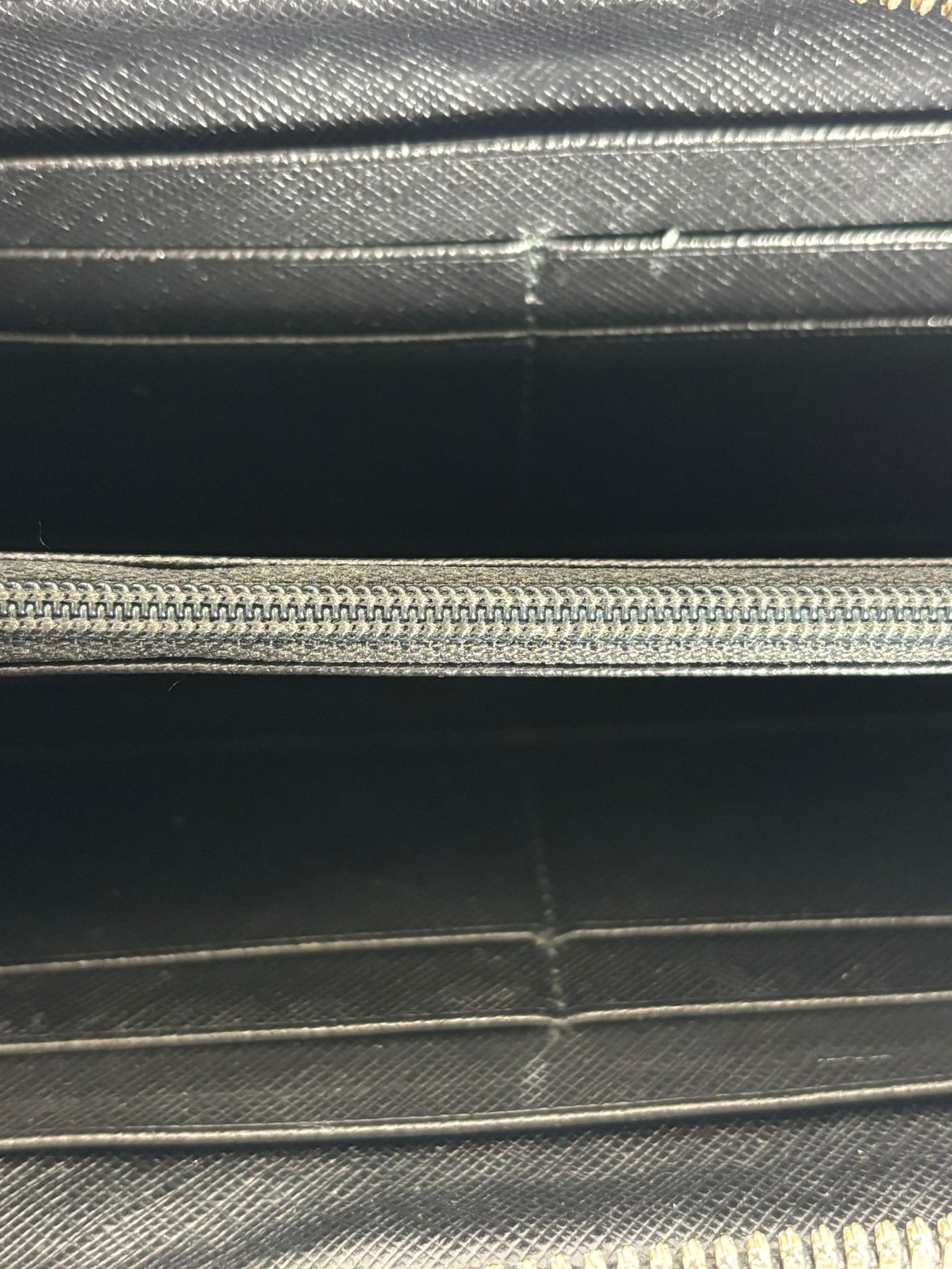 • Interior: Multiple card slots, bill compartments, zip coin pocket