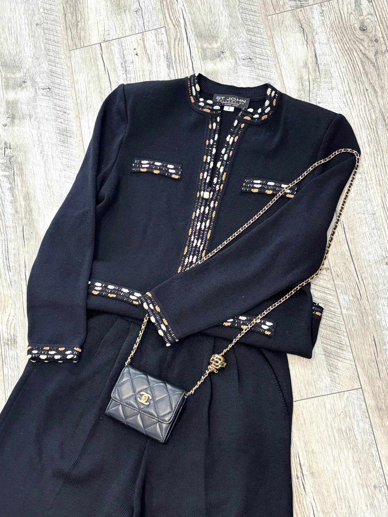 Polished, timeless, and effortlessly elegant, the St. John Basic Two-Piece Top and Pants Set exemplifies the brand’s signature blend of sophistication and comfort. Crafted in St. John’s iconic stretch knit fabric, this coordinated ensemble offers a smooth, flattering silhouette that moves beautifully with the body.