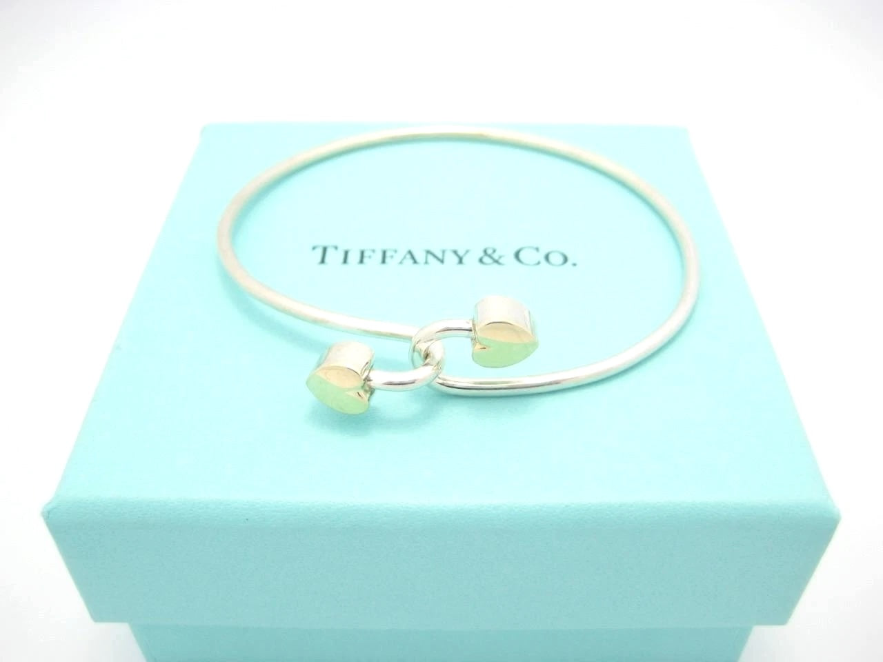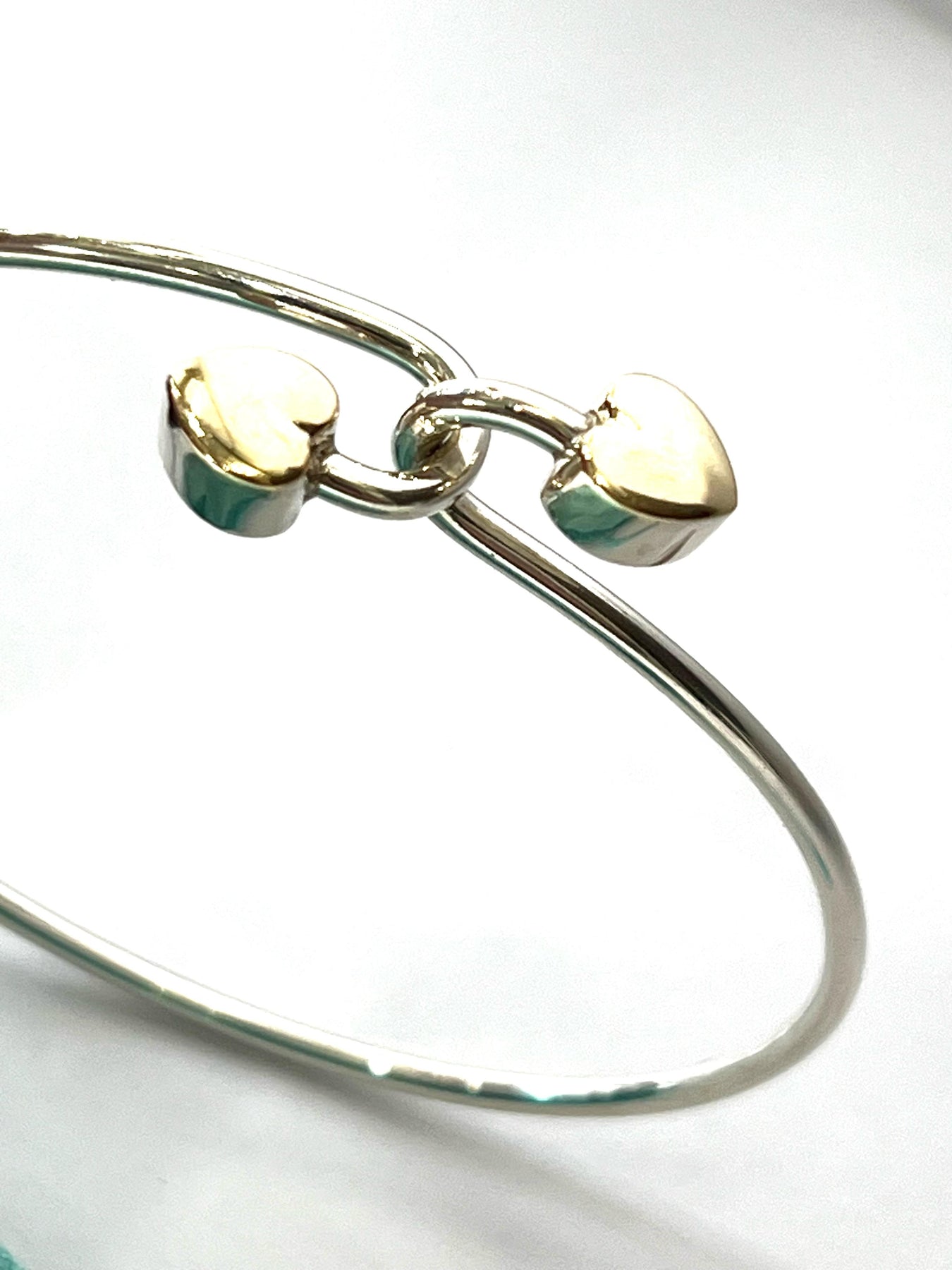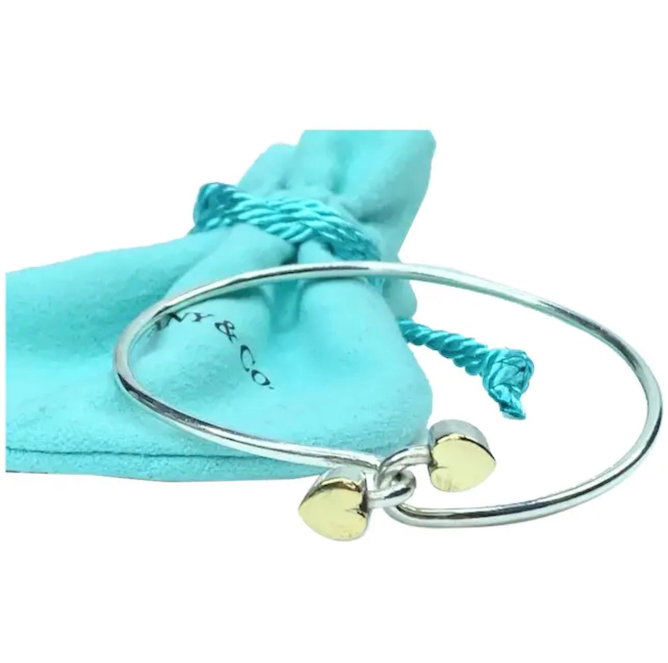TIFFANY & CO. 18K GOLD AND STERLING SILVER HEART BANGLE BRACELET
