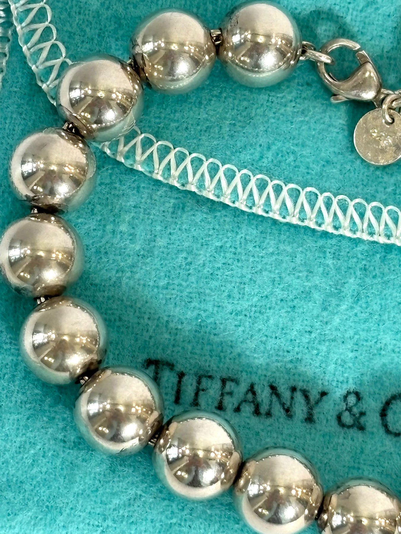 Refined, minimalist, and unmistakably elegant — the Tiffany & Co. Beaded Ball Bracelet is a timeless expression of effortless style. Crafted in gleaming sterling silver, this bracelet features a strand of perfectly polished round beads that reflect light with subtle brilliance.