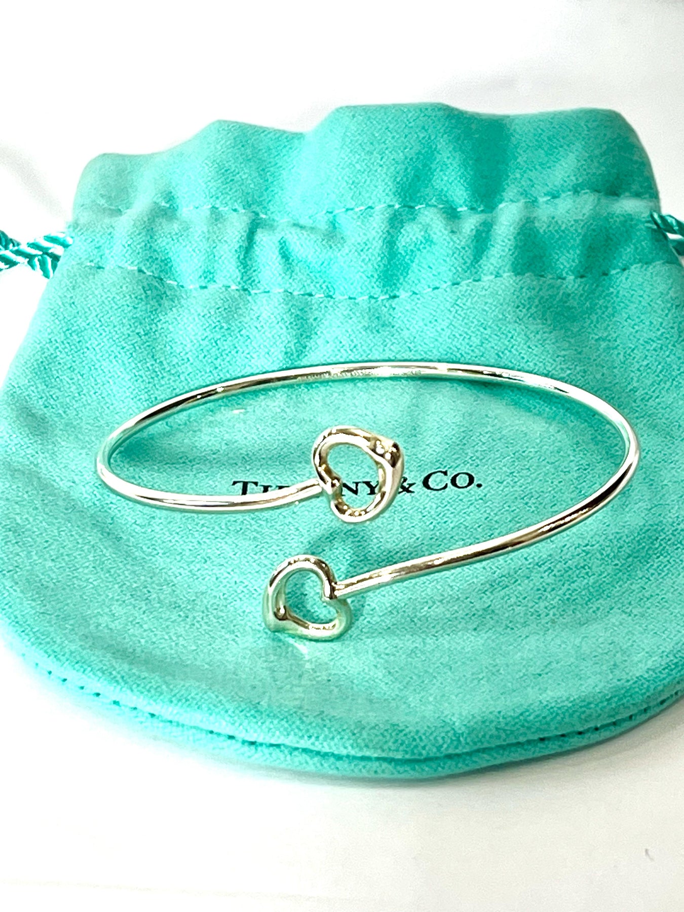 TIFFANY & CO. ELSA PERETTI STERLING SILVER 925 DOUBLE OPEN HEART BRACELET