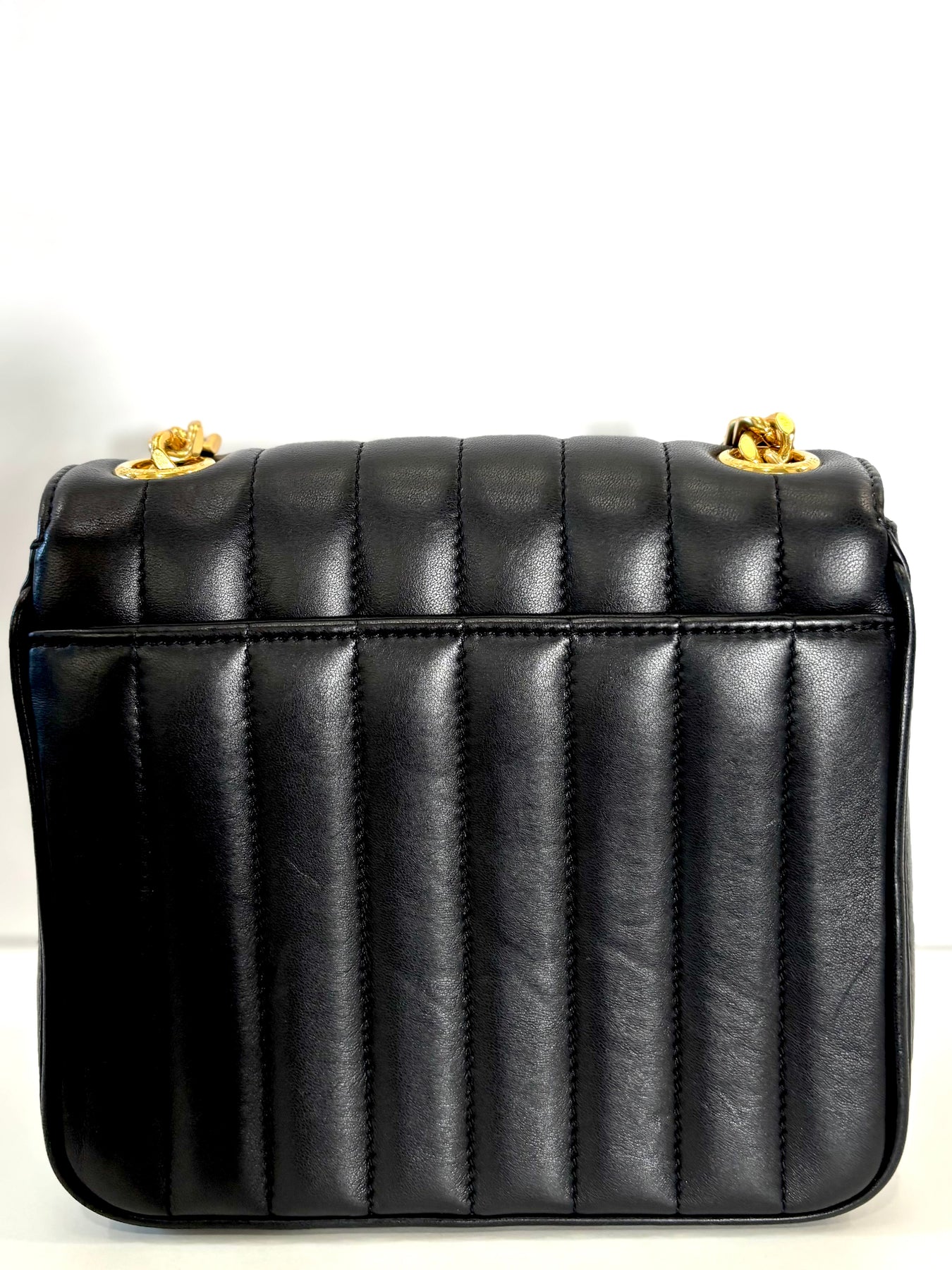 Timeless and sophisticated, the Saint Laurent Medium Vicky Shoulder Bag embodies classic Parisian elegance. Crafted in Quilted calfskin leather, this structured piece features the iconic YSL initials in raised gold-tone metal on the front flap, highlighting the brand’s refined aesthetic.