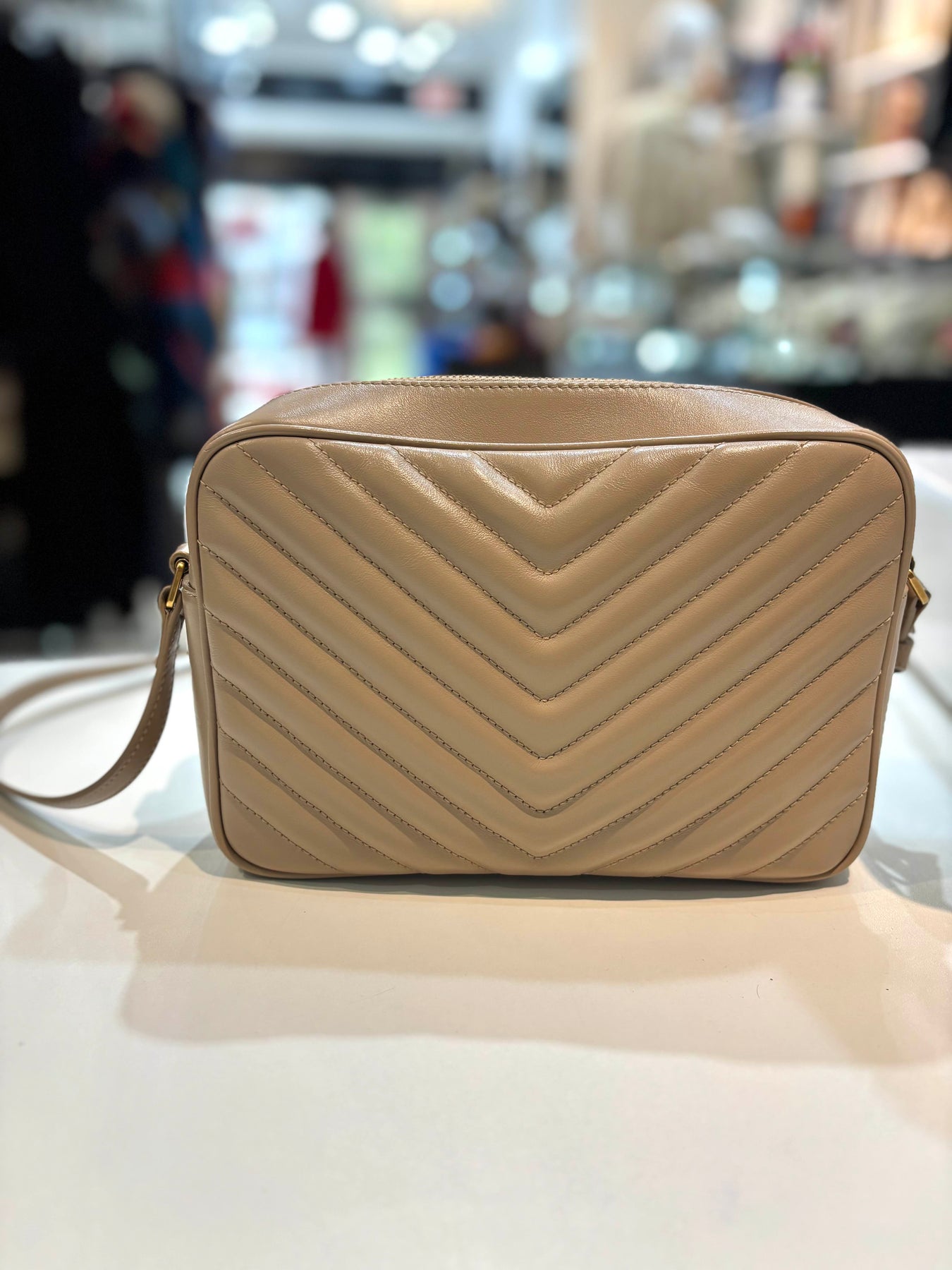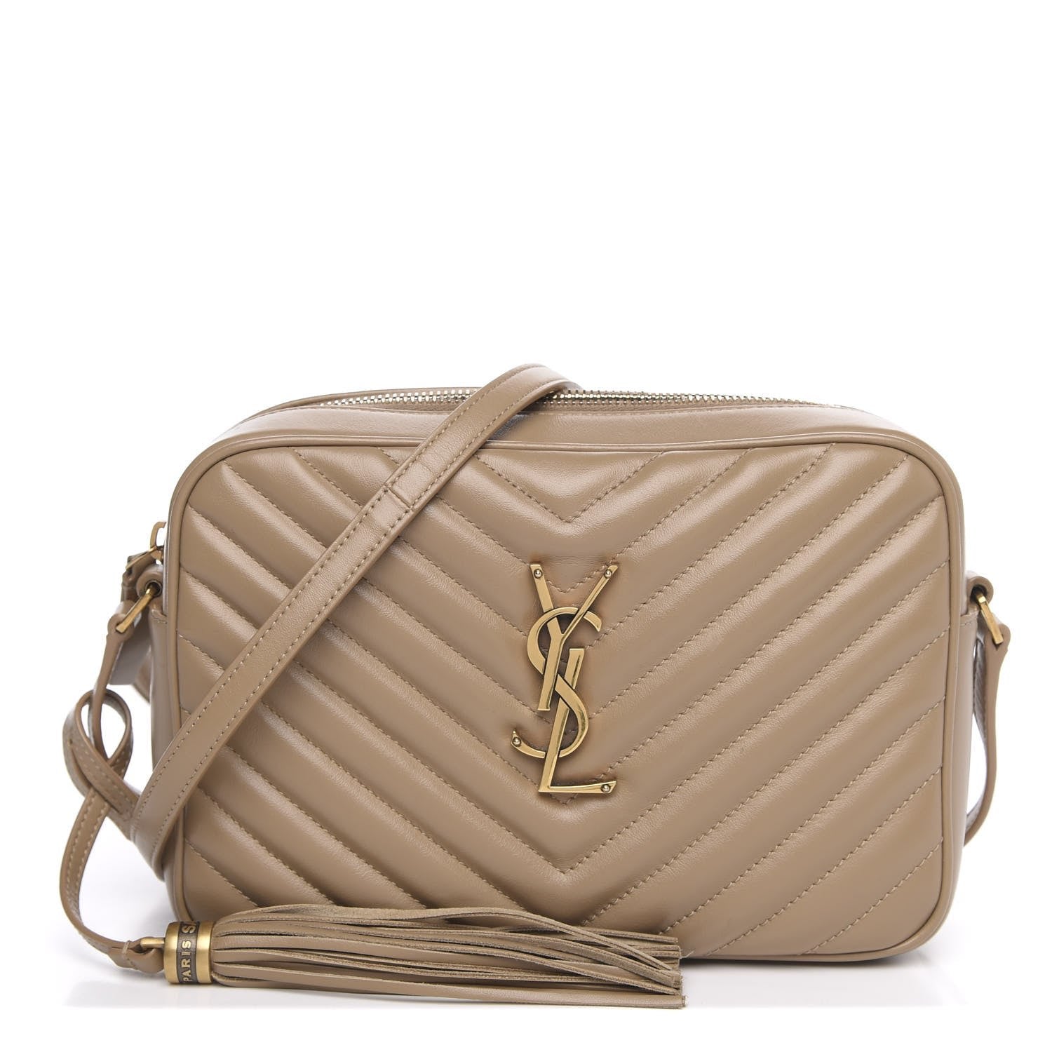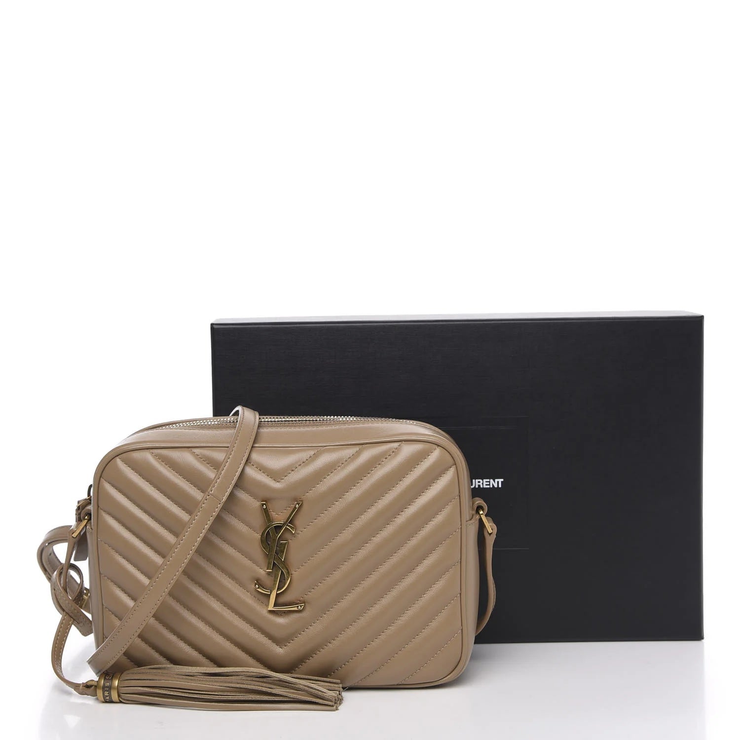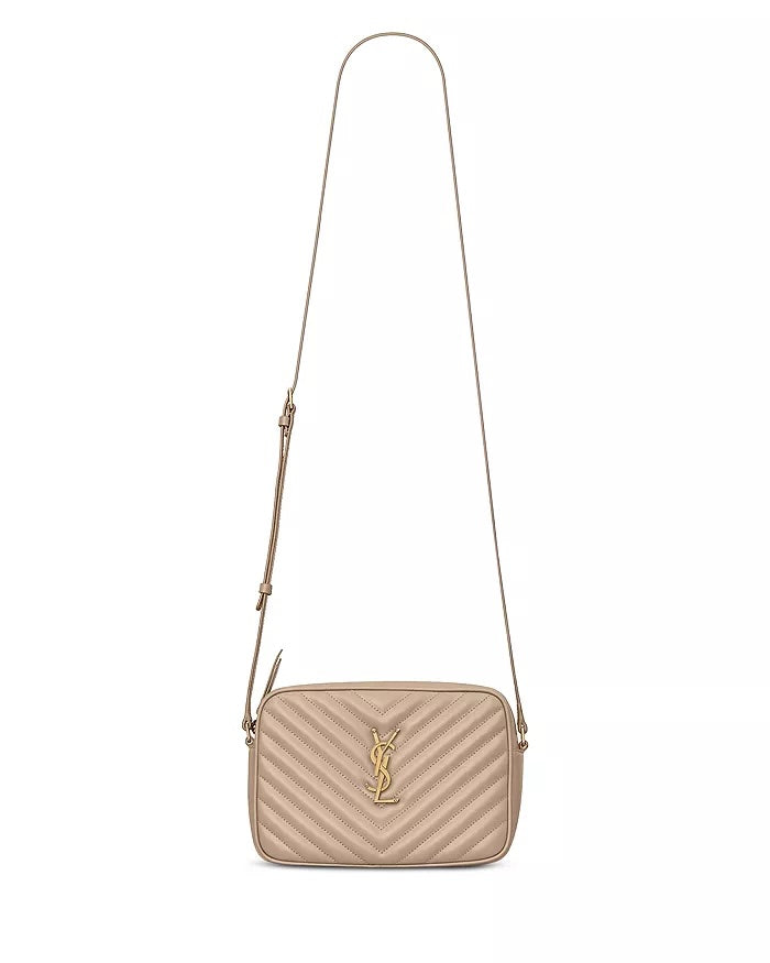 The Yves Saint Laurent Lou Camera Bag is a modern classic crafted from quilted calfskin leather. Designed with a compact camera-bag silhouette, it features a zip-top closure and an adjustable shoulder strap for versatile wear. Finished with signature YSL logo detailing, this bag combines everyday functionality with timeless sophistication.